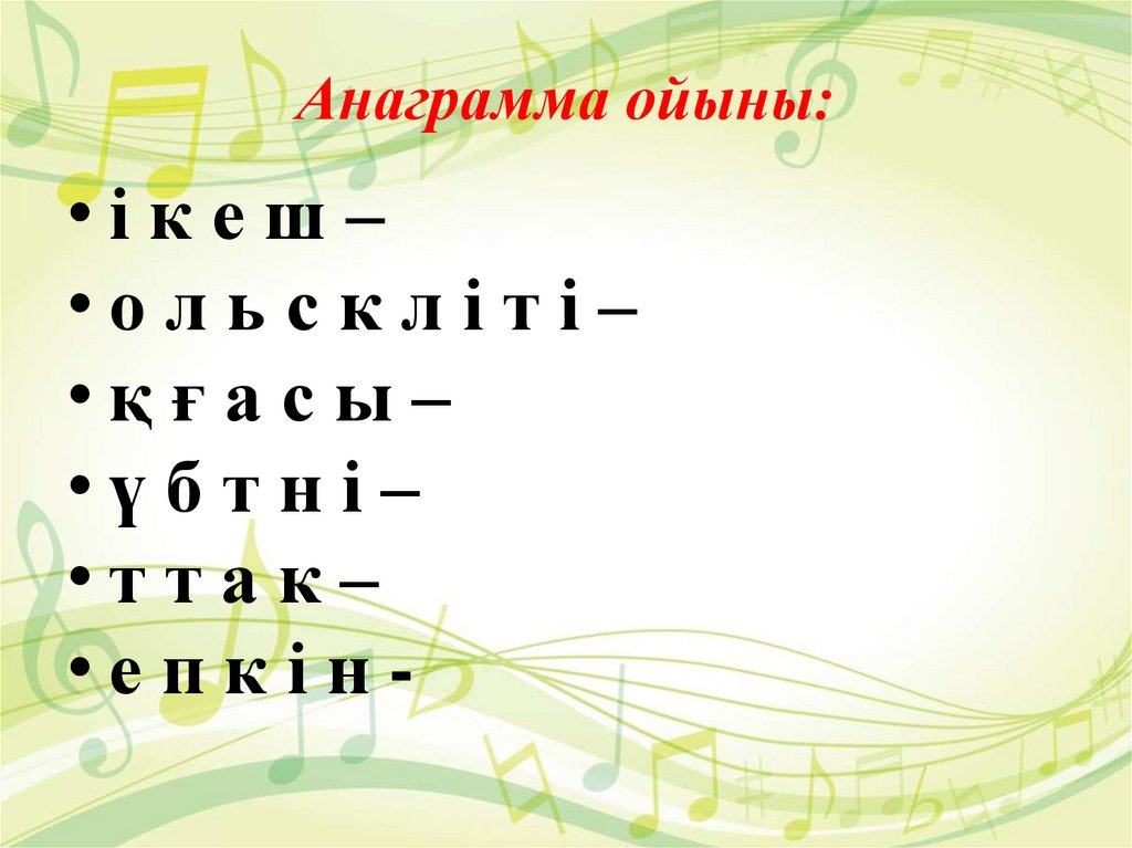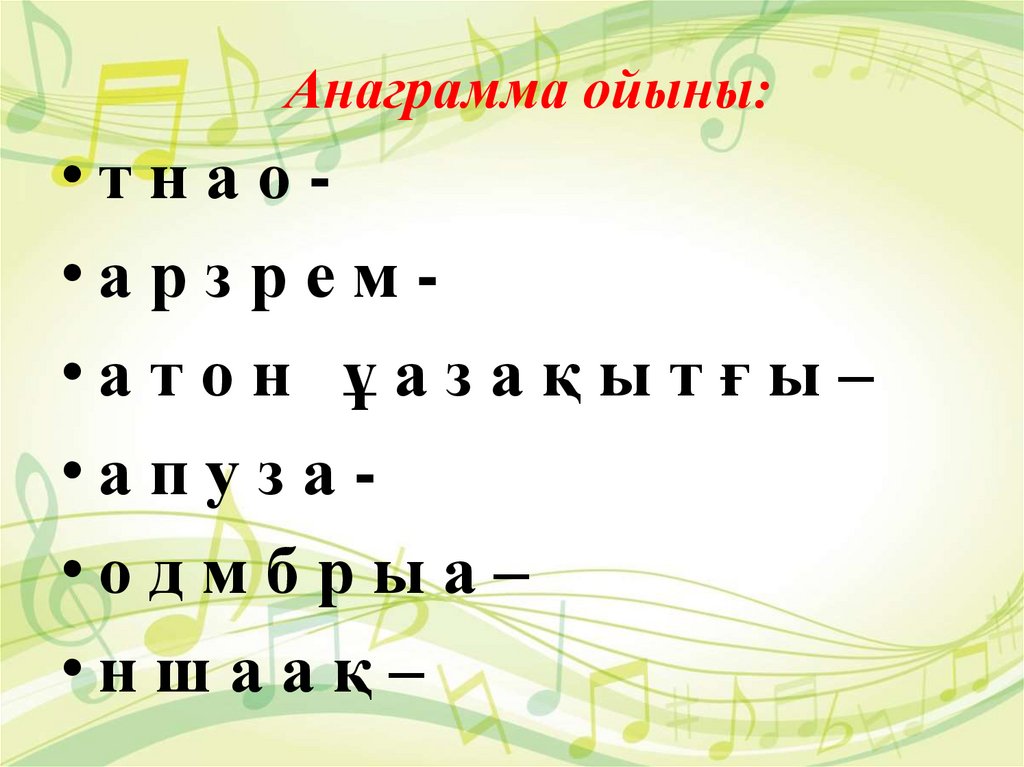 Анаграмма ойыны:•тнао•арзрем•атон ұазақытғы–