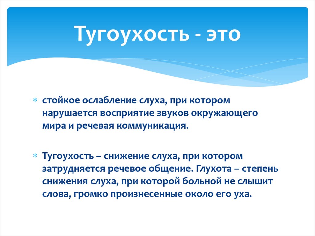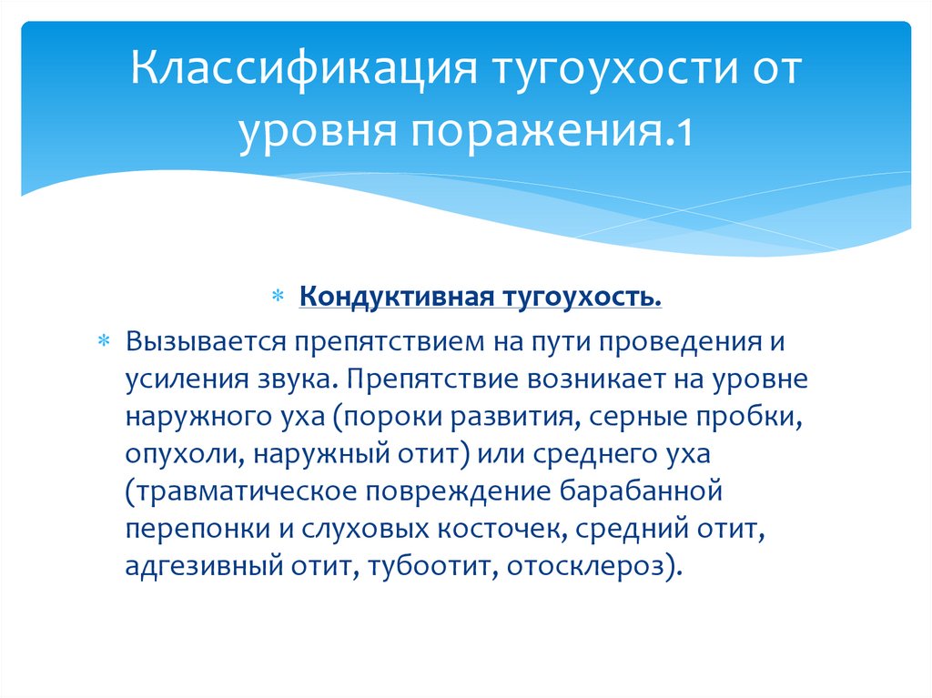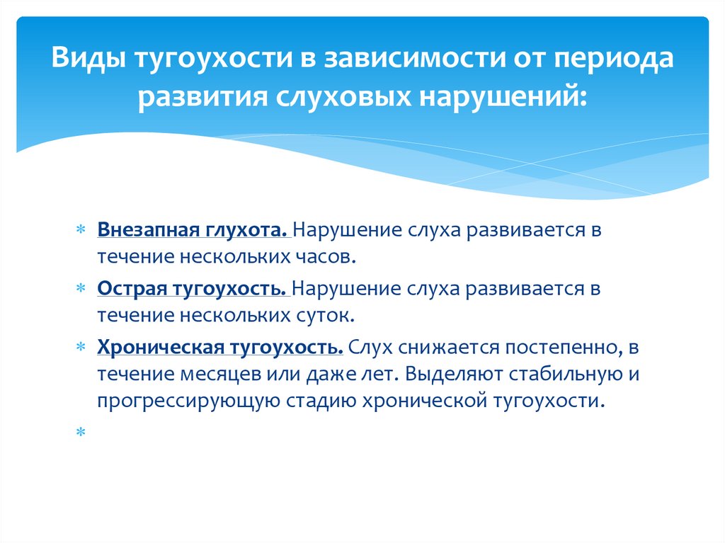 Виды тугоухости в зависимости от периодаразвития слуховых нарушений: