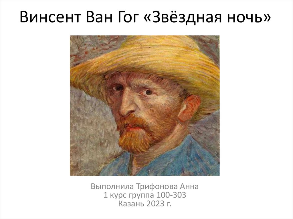 Винсент Ван Гог «Звёздная ночь»Выполнила Трифонова Анна