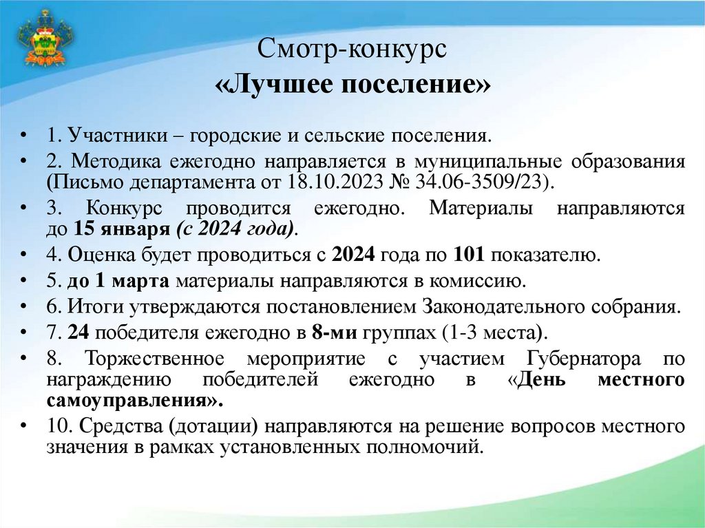 Смотр-конкурс «Лучшее поселение» участвуют все