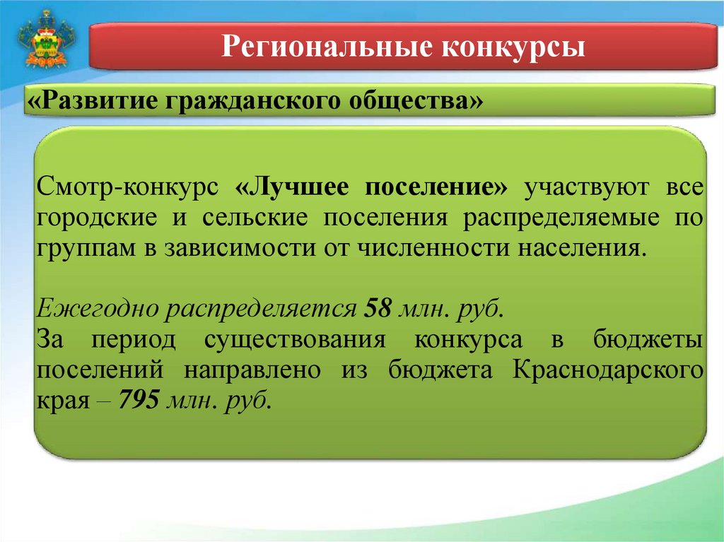 О практике организации и подведения итогов краевого смотра-конкурса на звание лучшего поселения Краснодарского края
