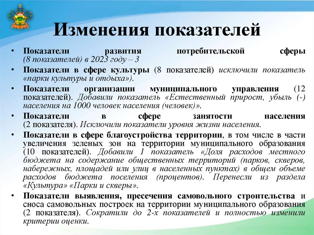 на территории муниципального образования (2 показателя). Сократили до 2-х показателей и
