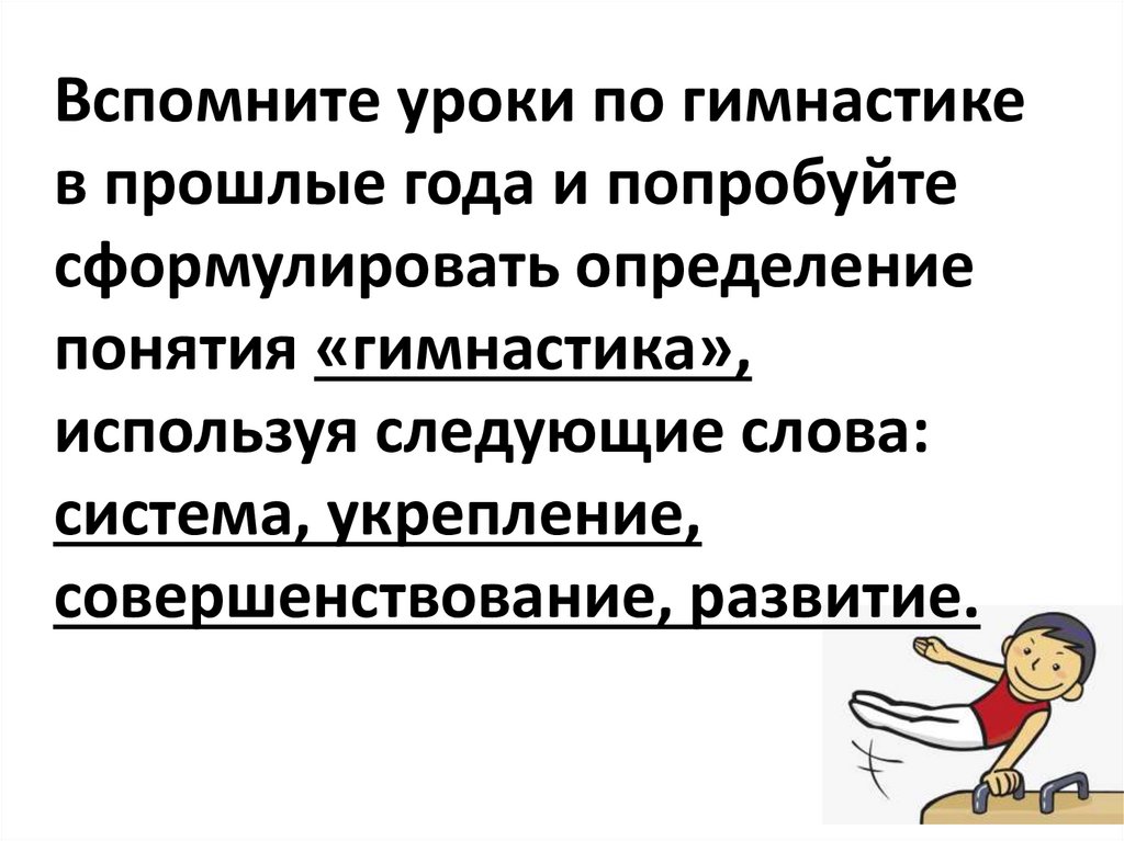 Вспомните уроки по гимнастикев прошлые года и попробуйте