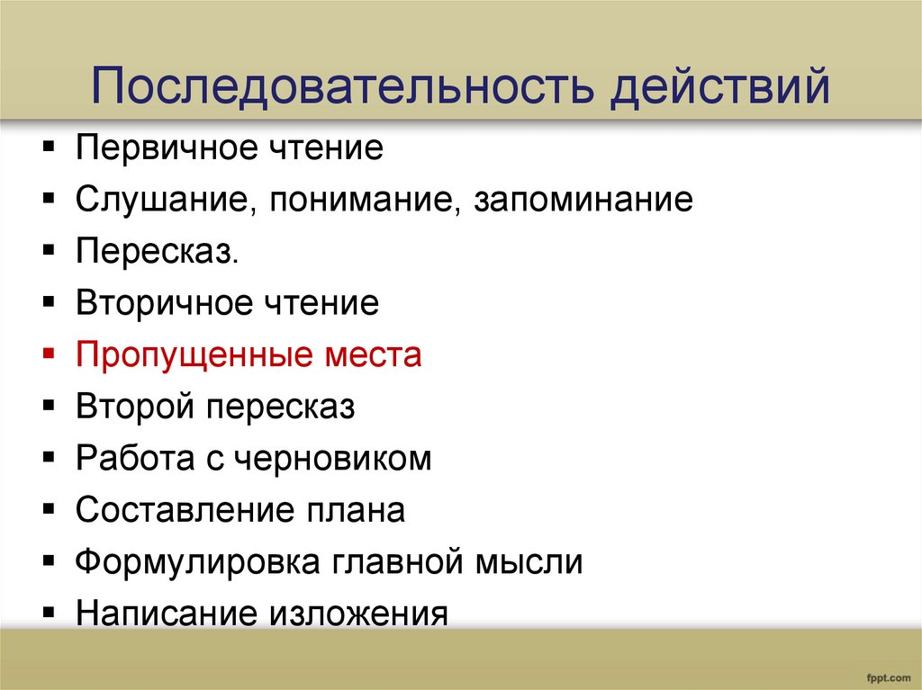Последовательность действийПервичное чтение