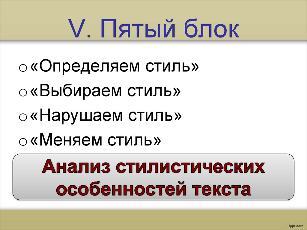 V. Пятый блокo«Определяем стиль»