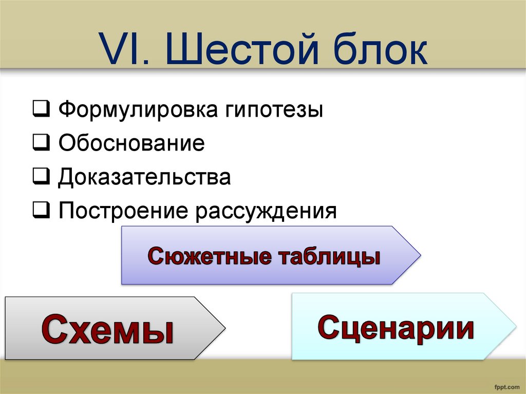 VI. Шестой блокФормулировка гипотезы