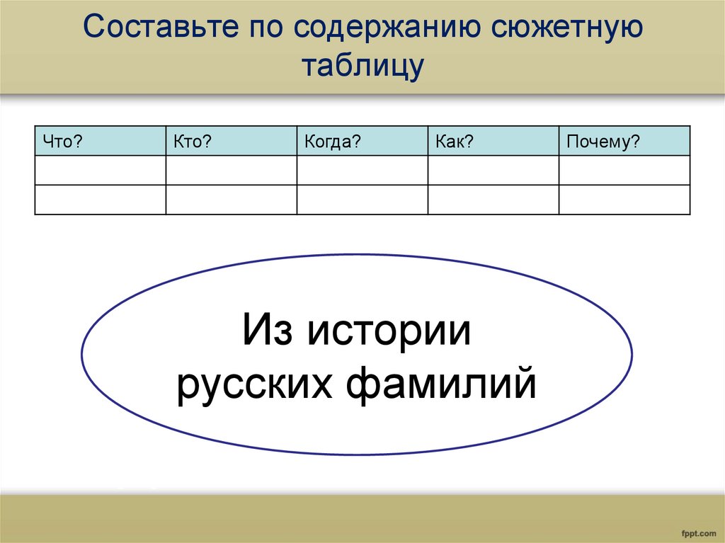 Составьте по содержанию сюжетнуютаблицу