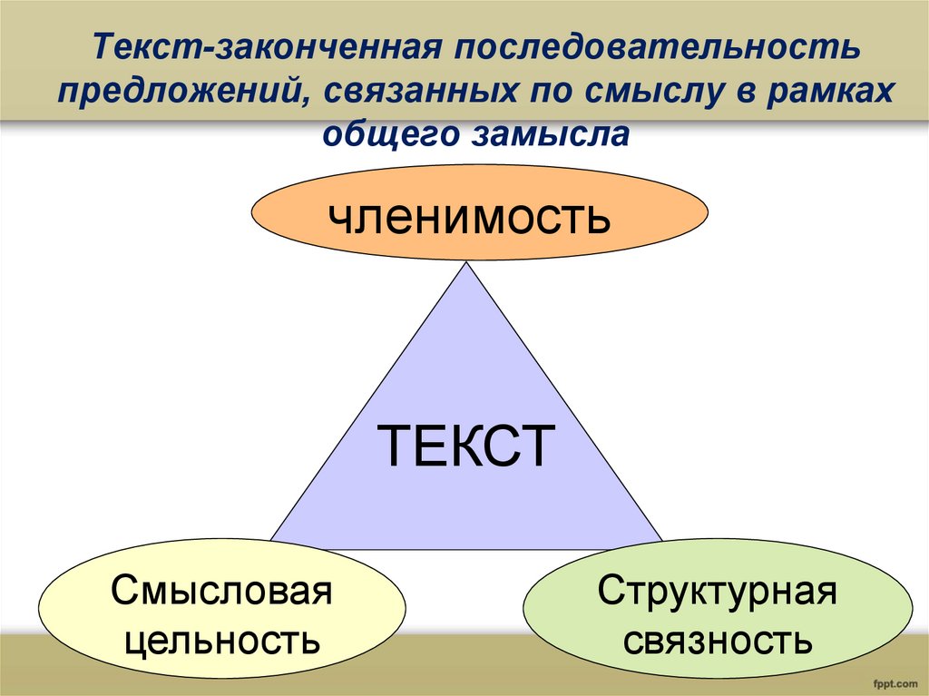Текст-законченная последовательностьпредложений, связанных по смыслу в рамках