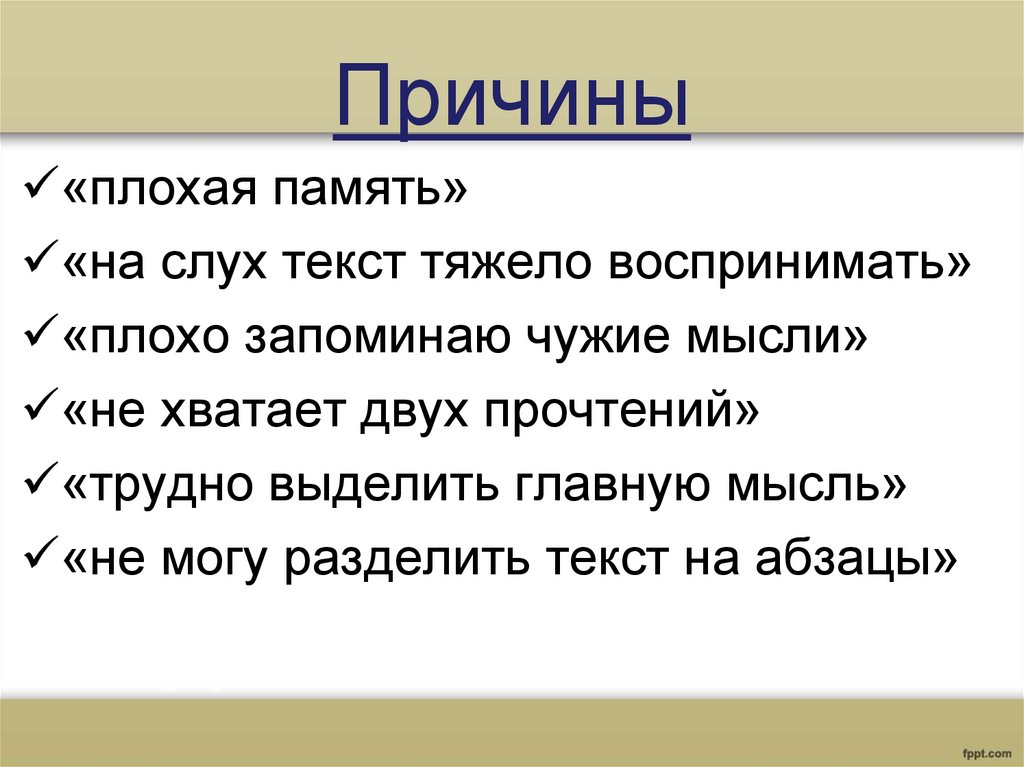 Причины«плохая память»