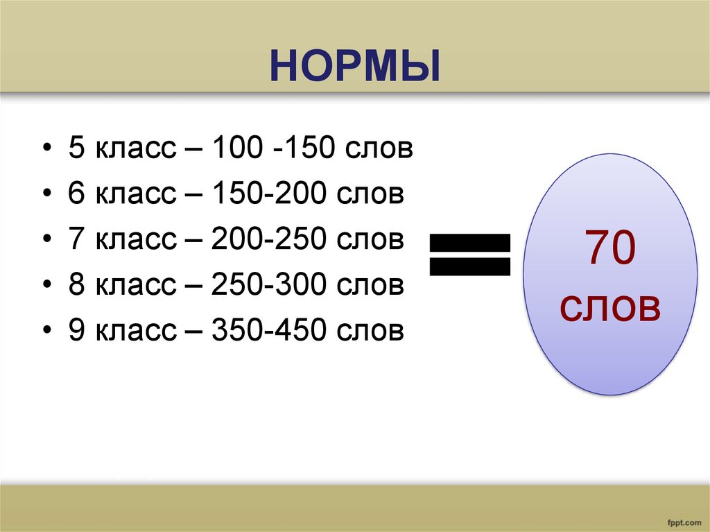 НОРМЫ5 класс – 100 -150 слов