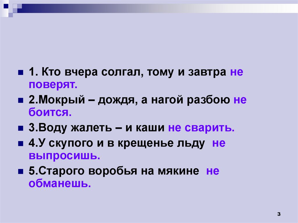 1. Кто вчера солгал, тому и завтра неповерят.