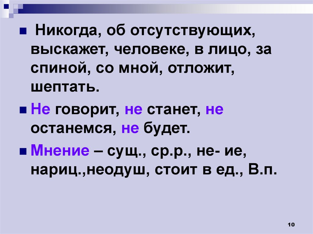 Мнение – сущ., ср.р., не- ие,