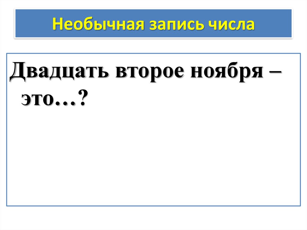 Необычная запись числаДвадцать второе ноября –