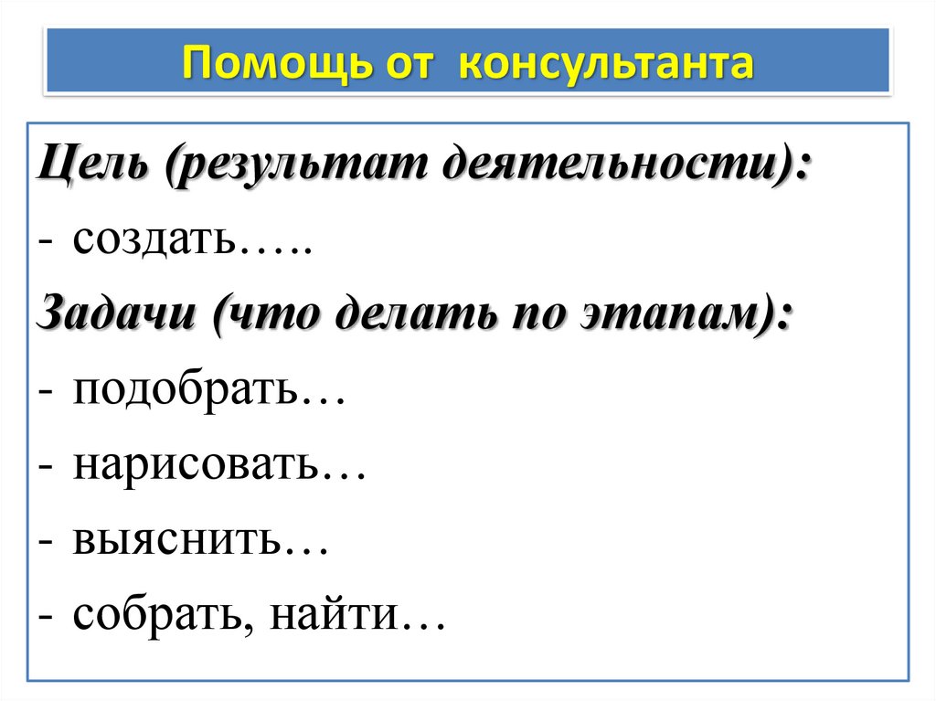 Помощь от консультантаЦель (результат деятельности):