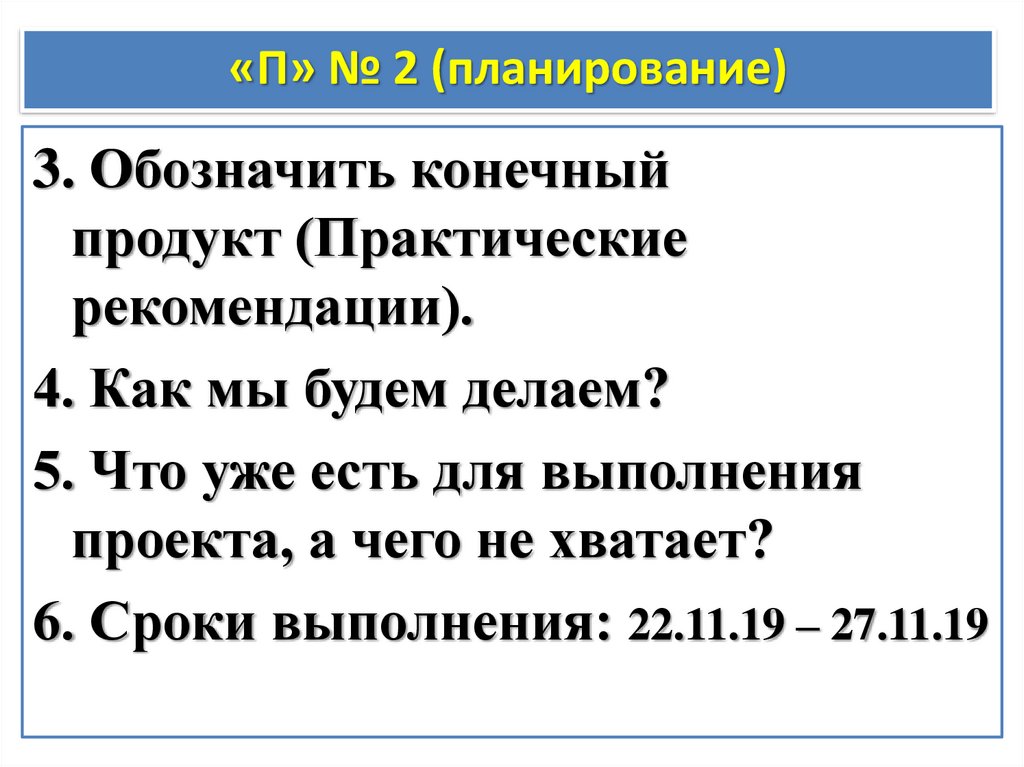 «П» № 2 (планирование)3. Обозначить конечный