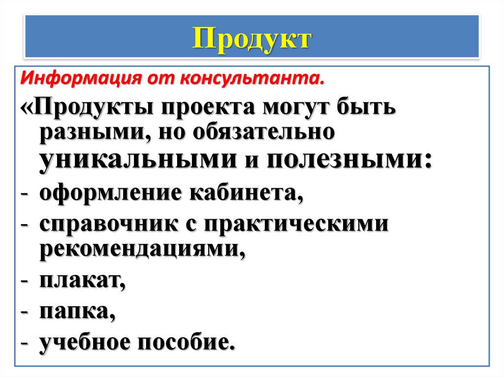ПродуктИнформация от консультанта.