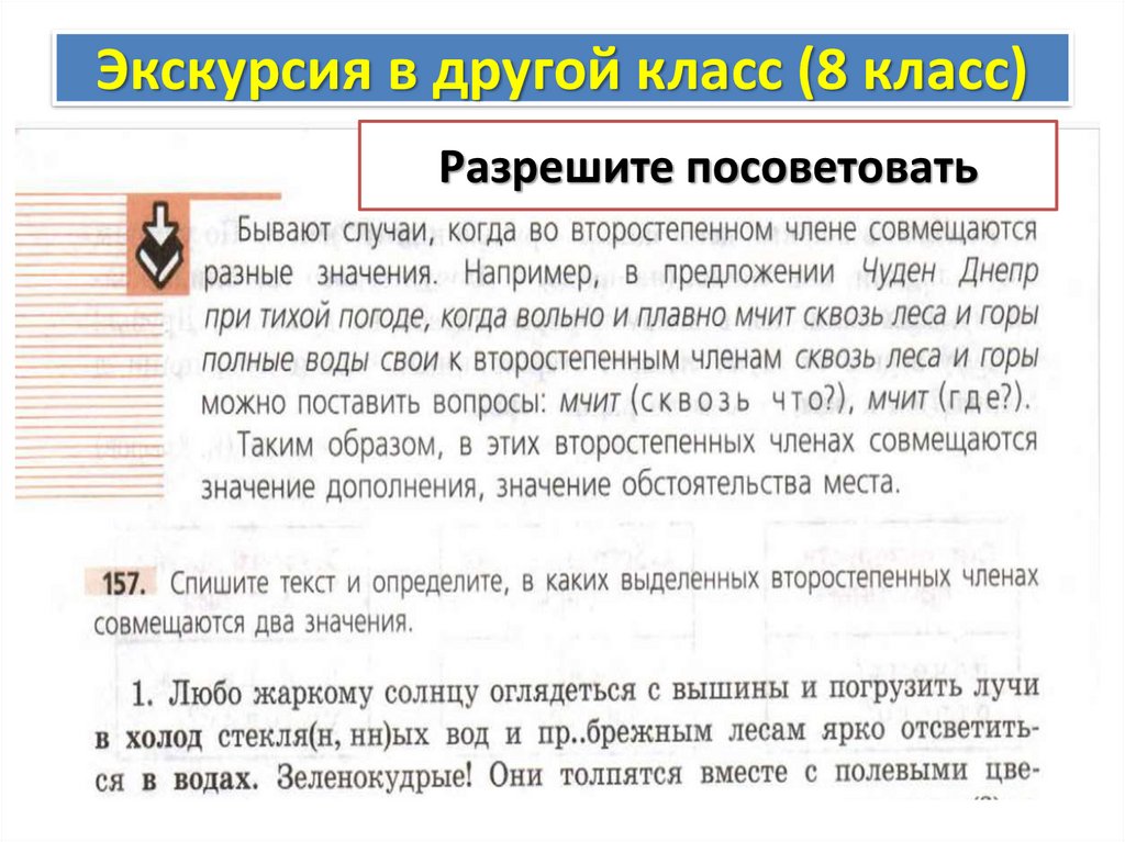 Экскурсия в другой класс (8 класс)Разрешите посоветовать