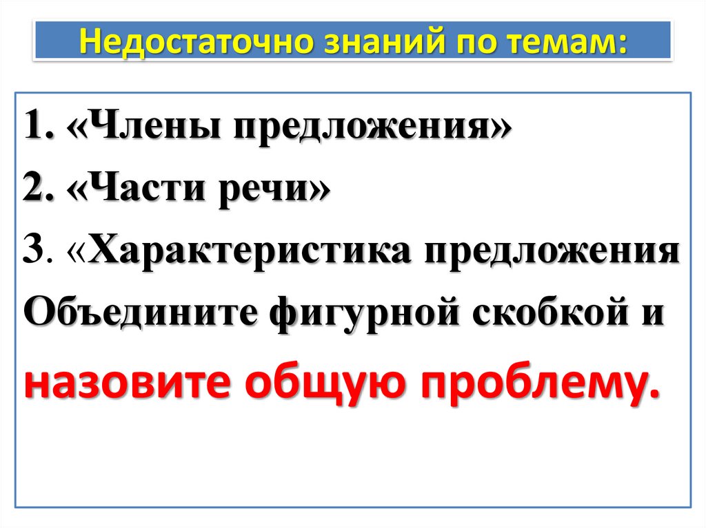 Недостаточно знаний по темам:1. «Члены предложения»