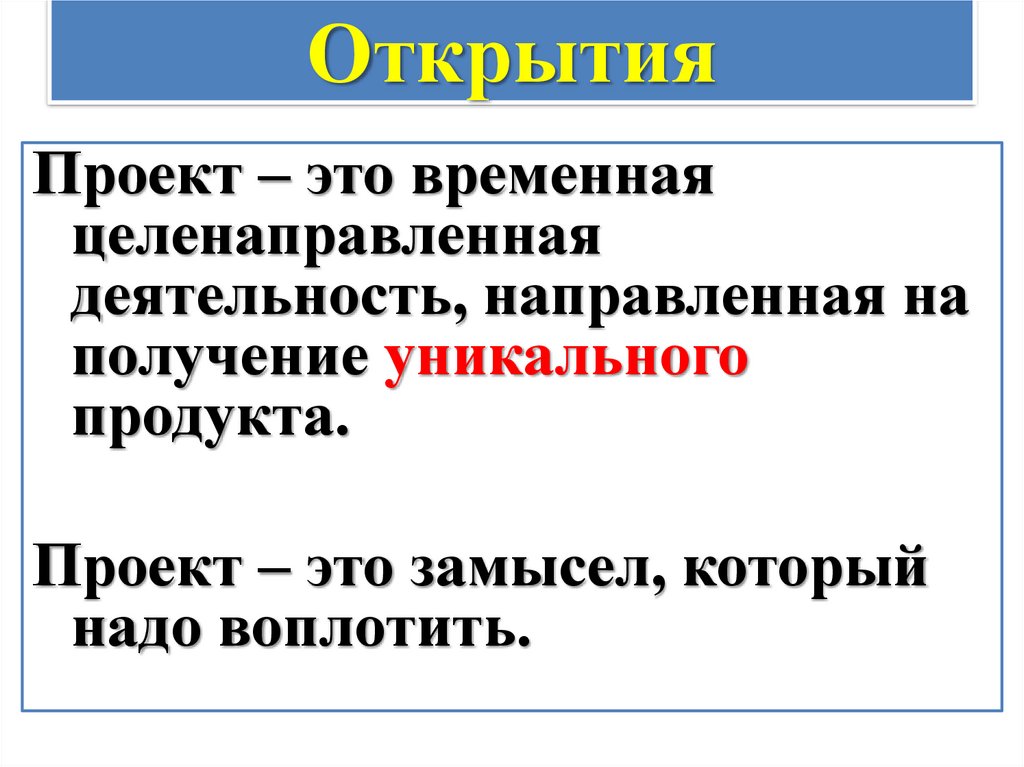ОткрытияПроект – это временная