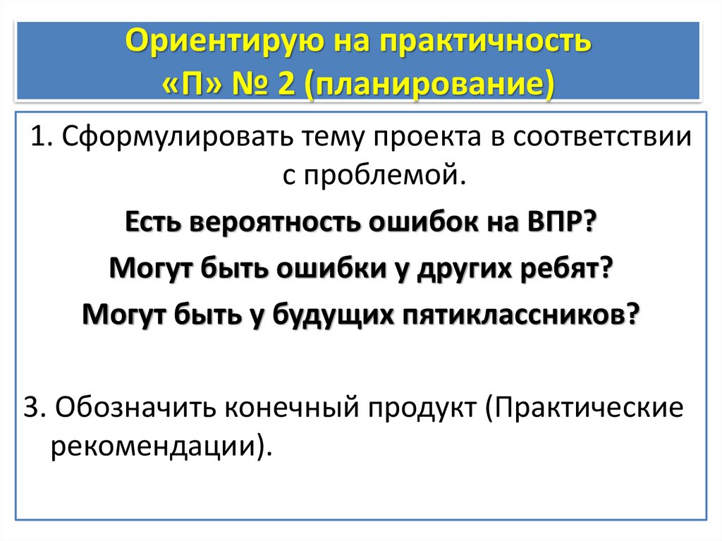 Ориентирую на практичность«П» № 2 (планирование)