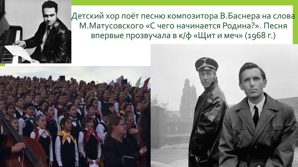 Детский хор поёт песню композитора В.Баснера на словаМ.Матусовского «С чего начинается Родина?». Песня