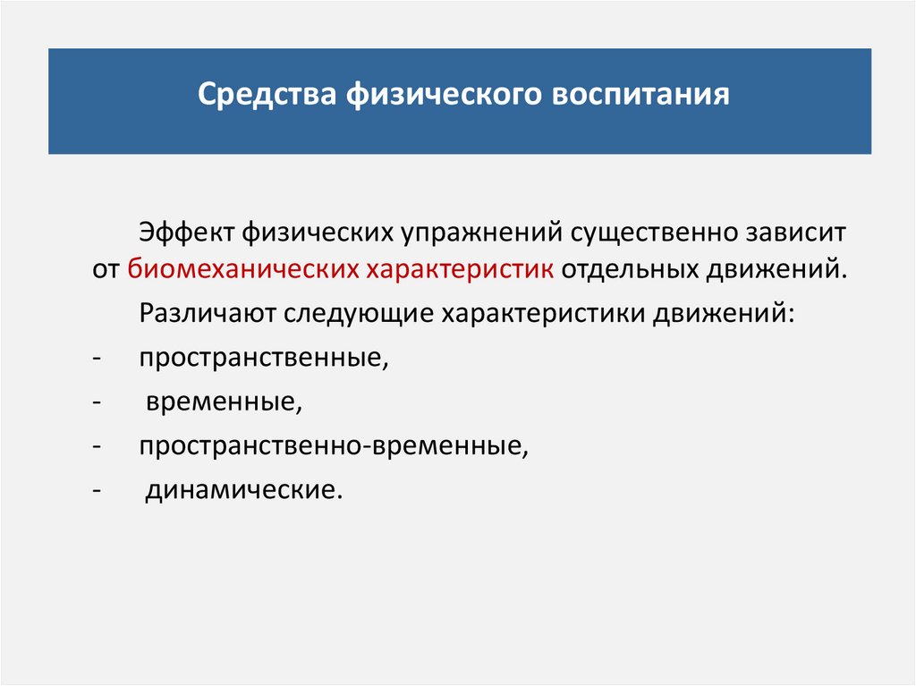 Средства физического воспитанияЭффект физических упражнений существенно зависит