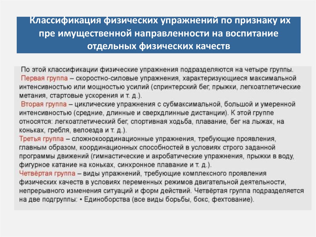 Классификация физических упражнений по признаку ихпре имущественной направленности на воспитание