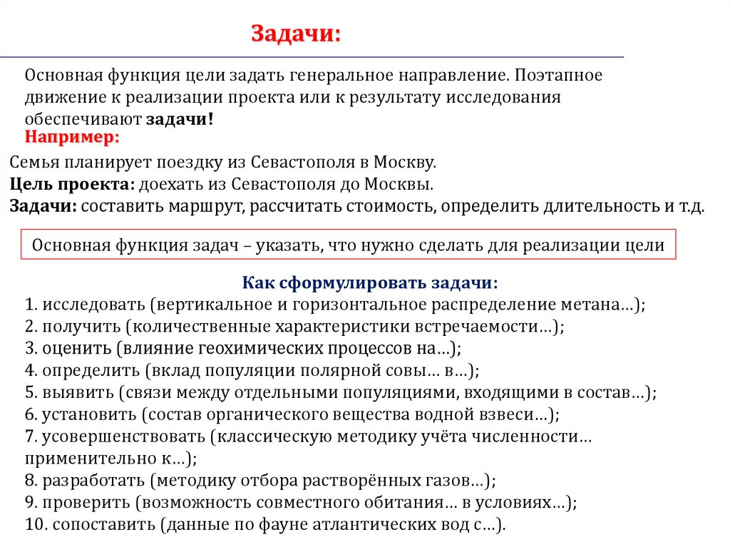 Задачи:Основная функция цели задать генеральное направление. Поэтапное