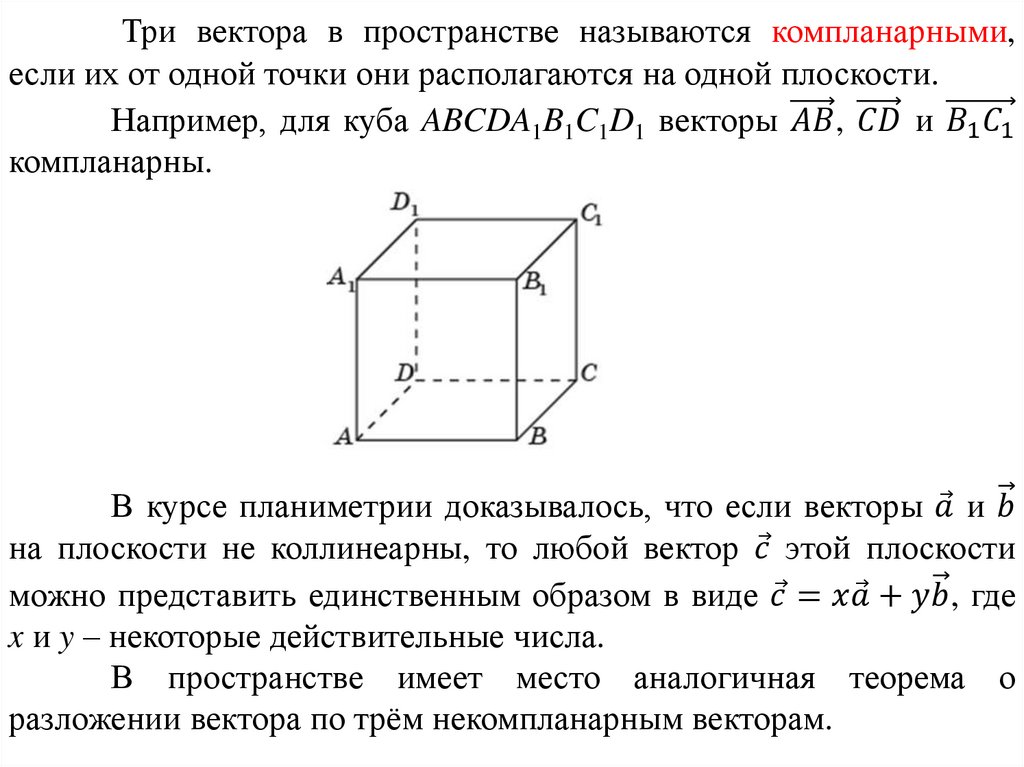 Коллинеарные и компланарные векторы. Разложение вектора по трем некомпланарным векторам