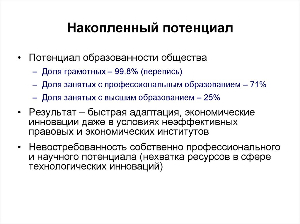 Накопленный потенциал• Потенциал образованности общества
