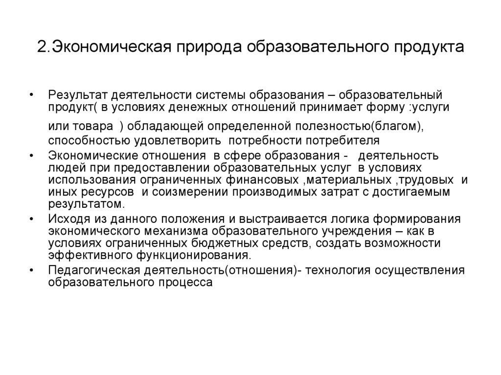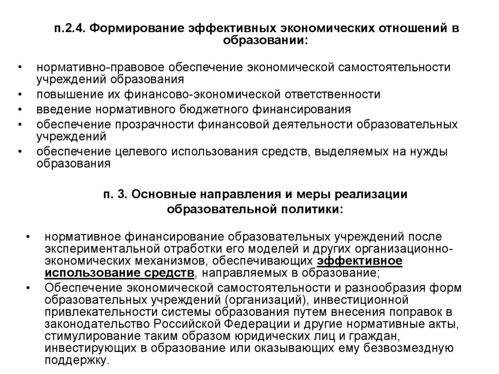 п.2.4. Формирование эффективных экономических отношений вобразовании: