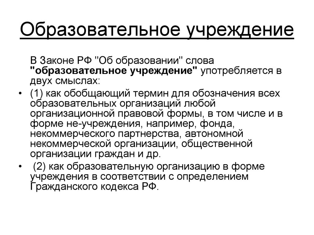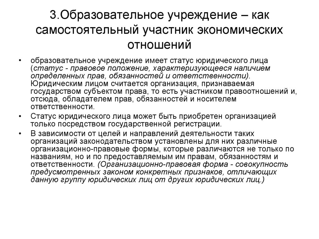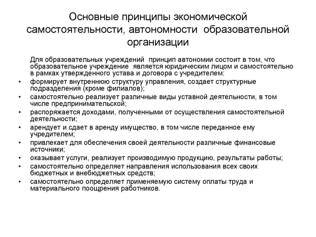 самостоятельности образовательных организаций (учреждений) для
