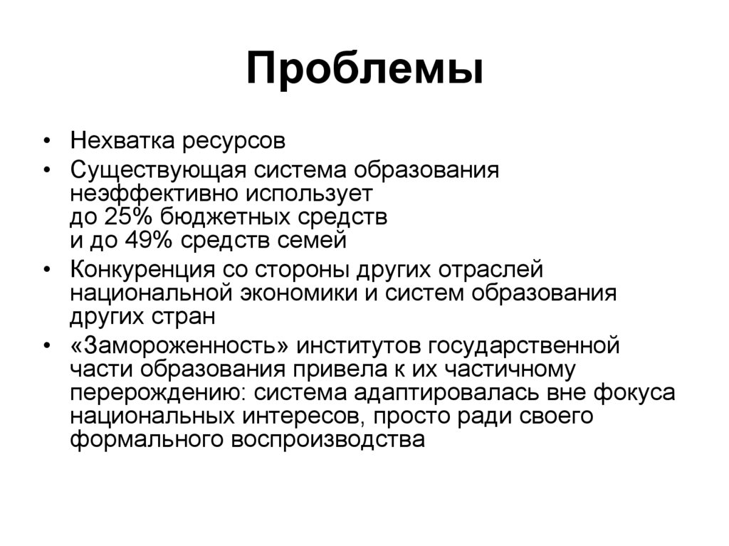 • Существующая система образования