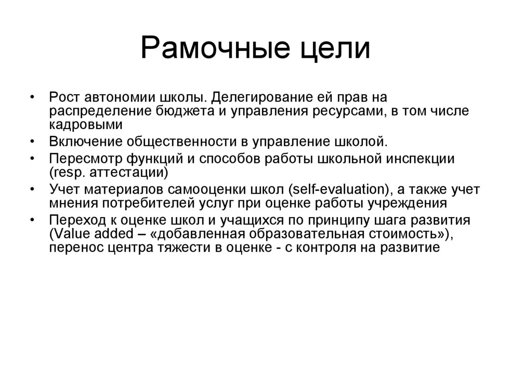 • Определить ответственность школы за конечный
