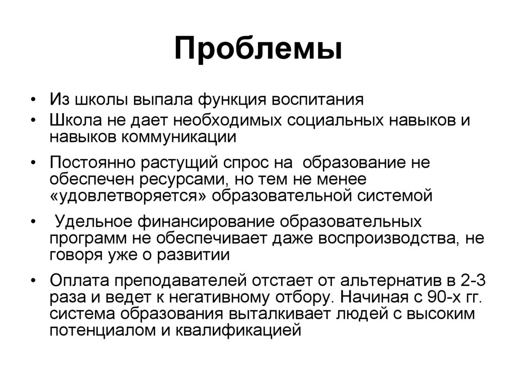 Проблемы• Из школы выпала функция воспитания