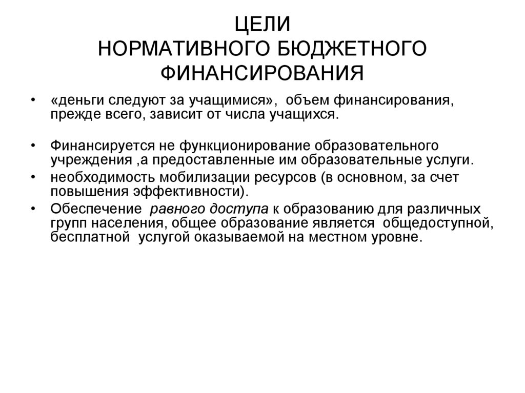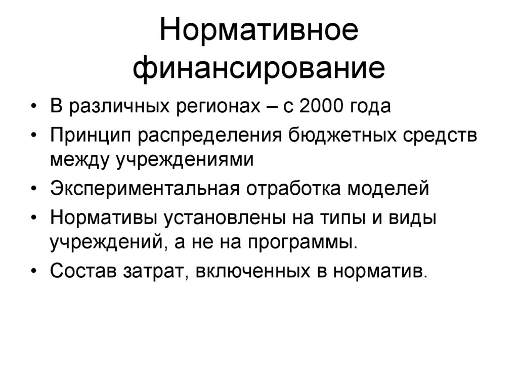 введение нормативного бюджетного финансирования