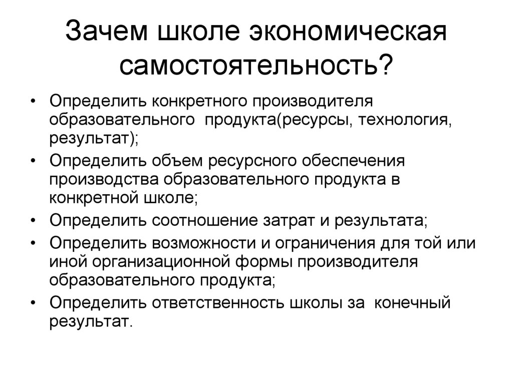 Зачем школе экономическаясамостоятельность?