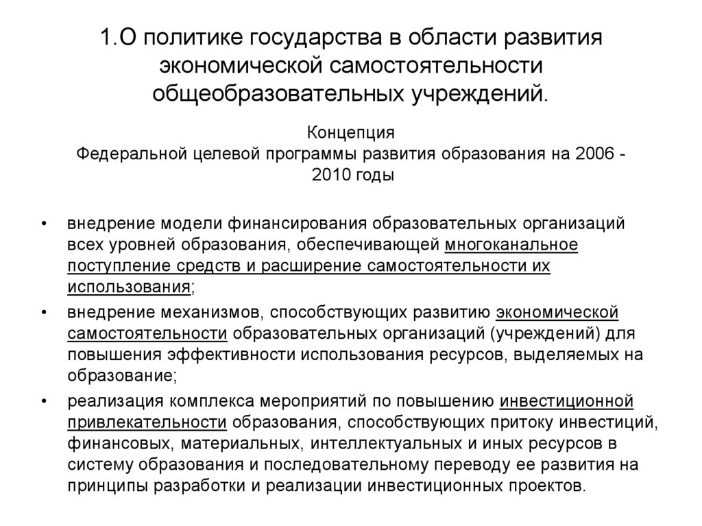 1.О политике государства в области развитияэкономической самостоятельности