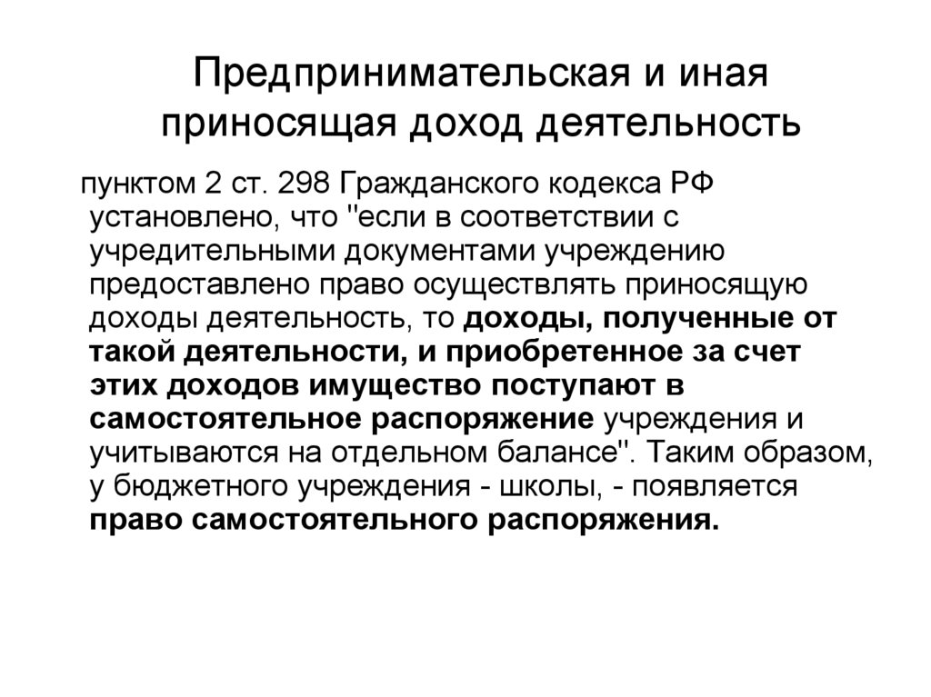 Предпринимательская и инаяприносящая доход деятельность