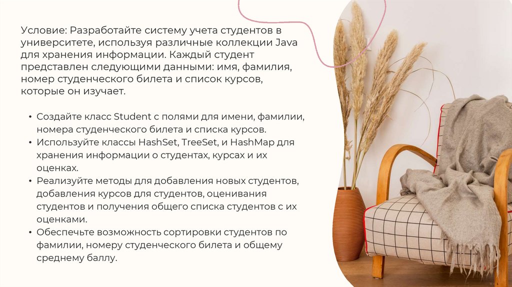 Условие: Разработайте систему учета студентов вуниверситете, используя различные коллекции Java