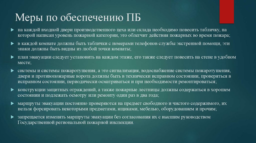 Меры по обеспечению ПБна каждой входной двери производственного цеха или склада необходимо повесить табличку, на