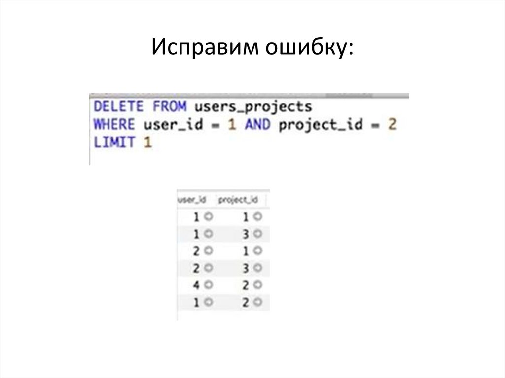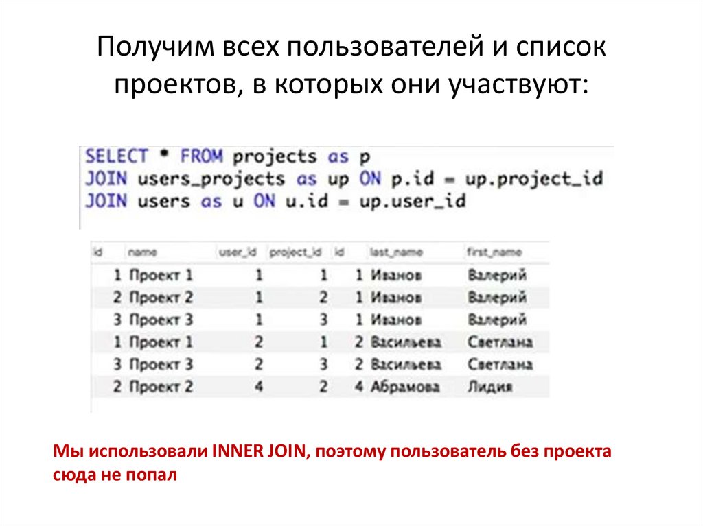 Мы использовали INNER JOIN, поэтому пользователь без проекта