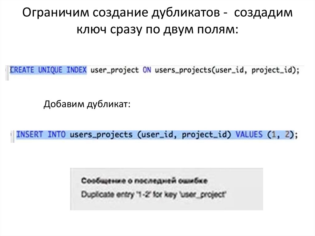 Ограничим создание дубликатов - создадимключ сразу по двум полям: