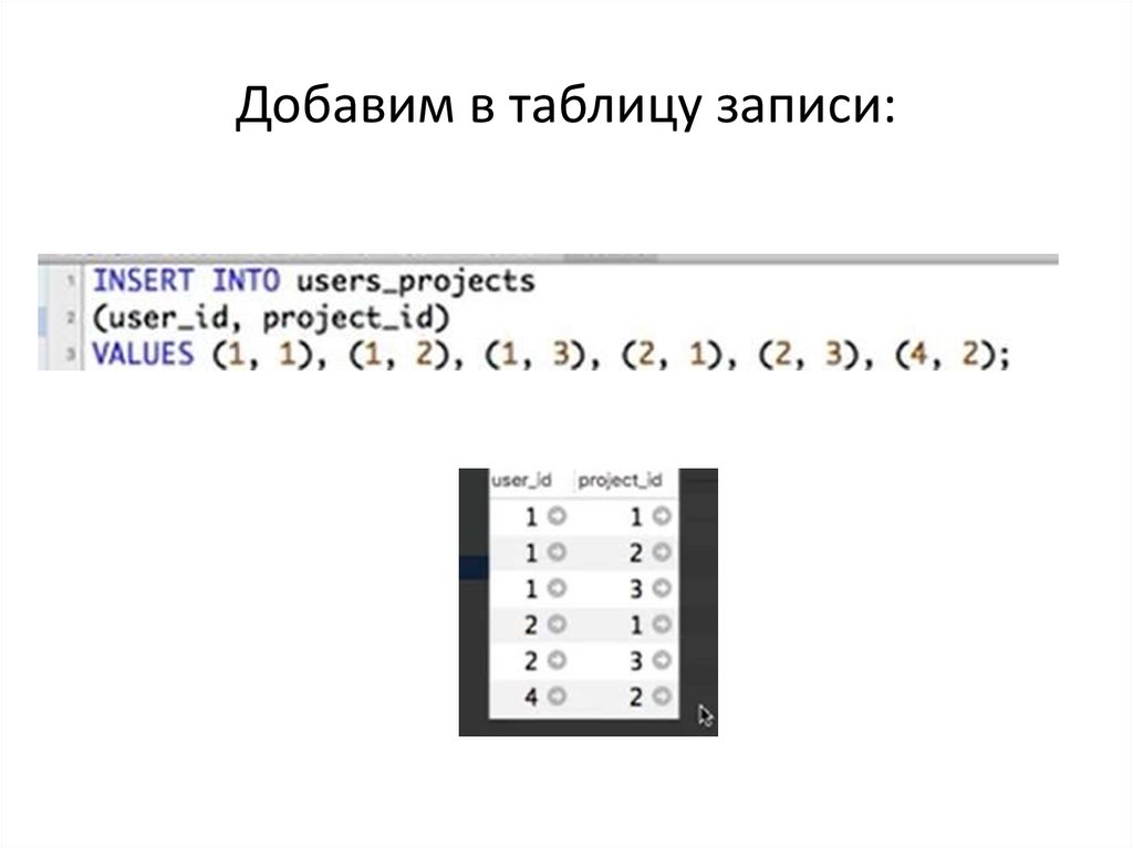 Добавим в таблицу записи:6.