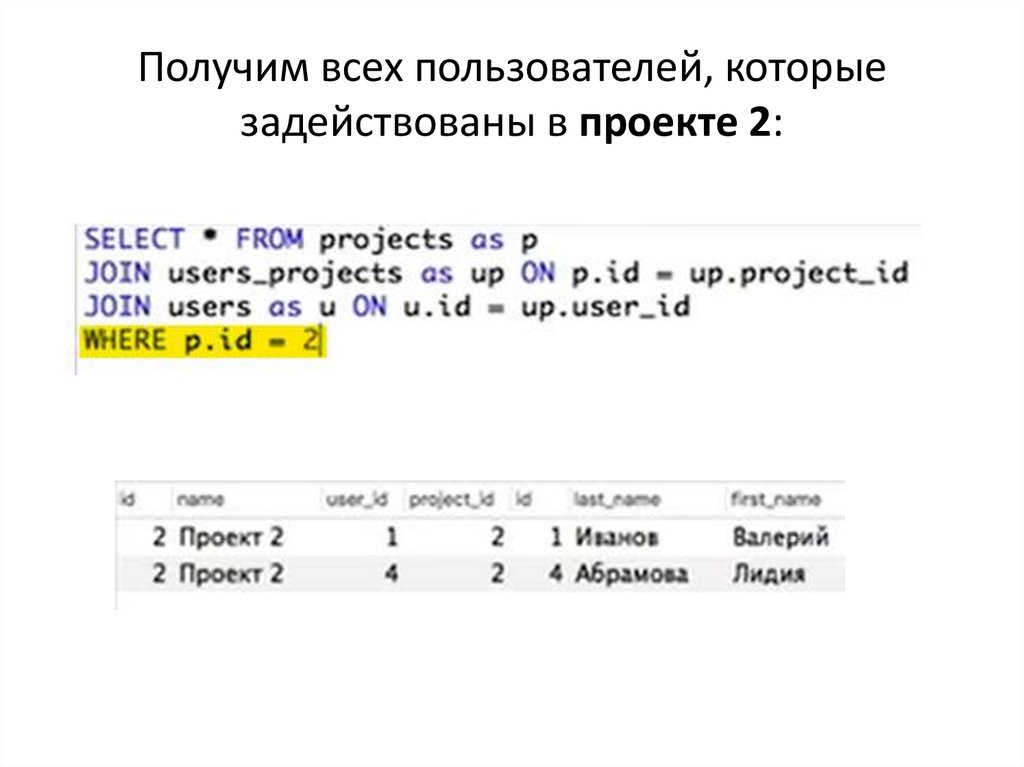 Получим всех пользователей, которыезадействованы в проекте 2:
