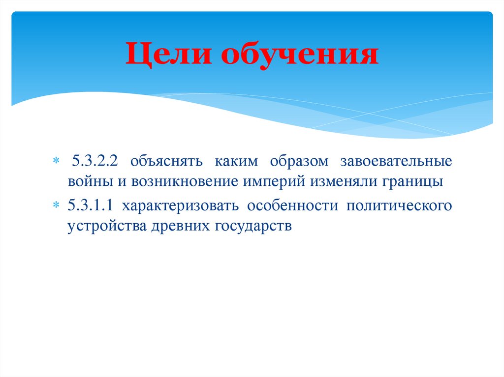Цели обучения5.3.2.2 объяснять каким образом завоевательные