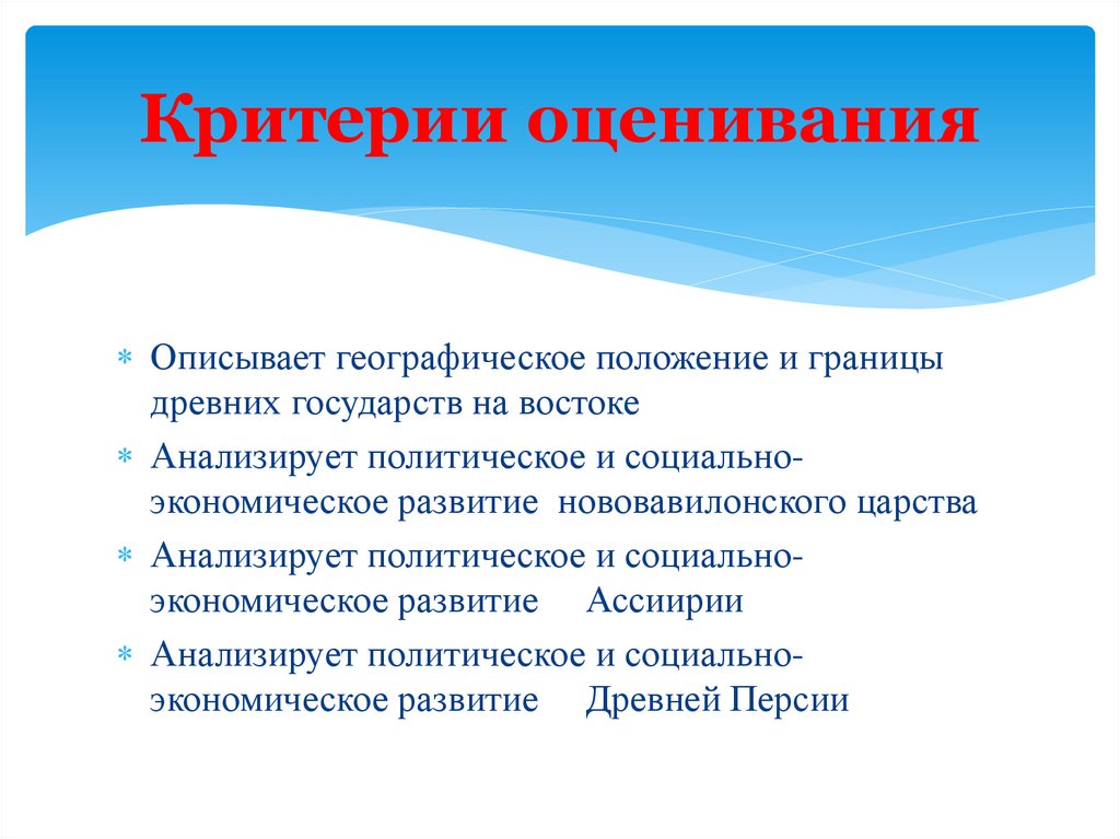 Критерии оцениванияОписывает географическое положение и границы