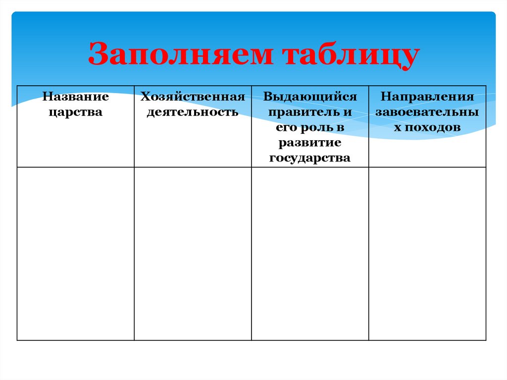 Заполняем таблицуНазвание