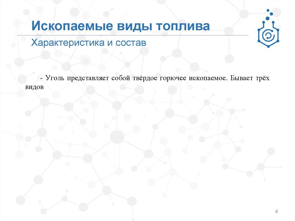 Ископаемые виды топливаК ископаемым видам топлива относятся уголь, нефть, природный газ и другие