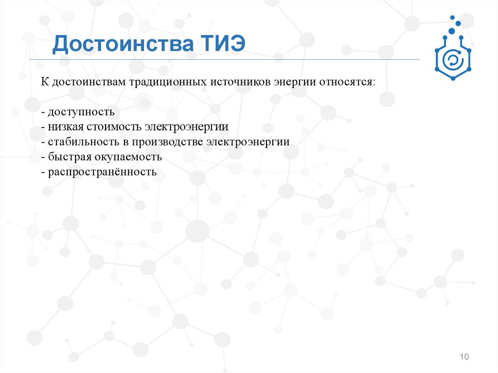 Достоинства ТИЭК достоинствам традиционных источников энергии относятся: